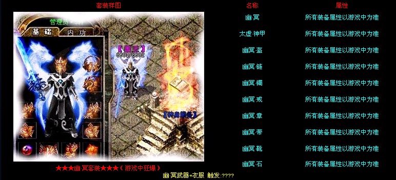 【套装触发】 穿上套装都将激活隐藏属性,具体属性就在游戏中体验..
