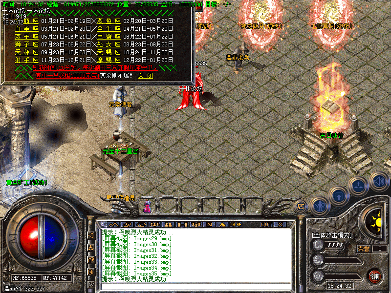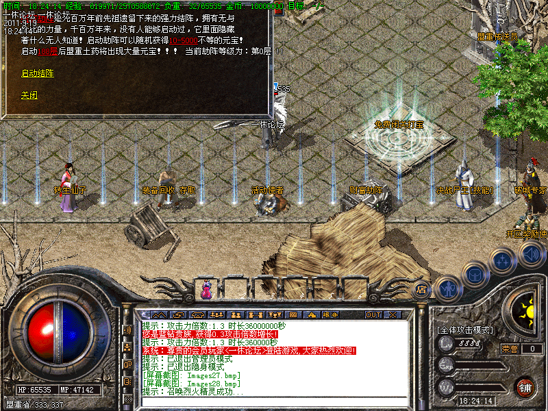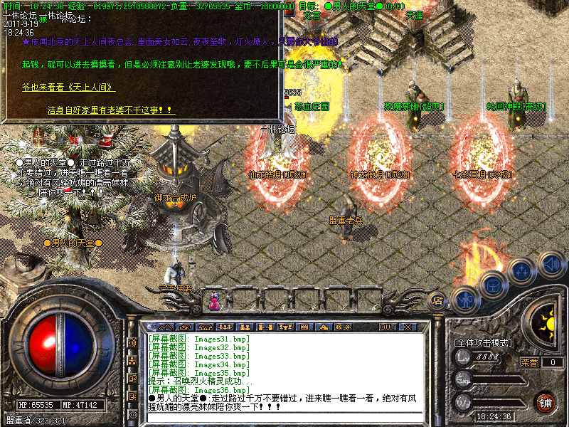 【新手专场】:开放新手天堂(土城右下角340 340进入),此地图进入后是边免费泡点升级(每秒高达20000经验),而且还可以打怪获得特殊戒指→怒血皓月→黄金皓月→粉红皓月→噬血破魂套等。