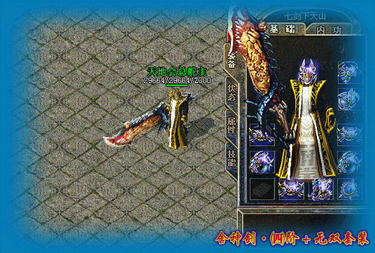 版本名称:GM基地-9月独家七剑天山元素靓装版|鬼斧神工|烈焰古塔|五绝境地|自创技能[HERO引擎]完整开区