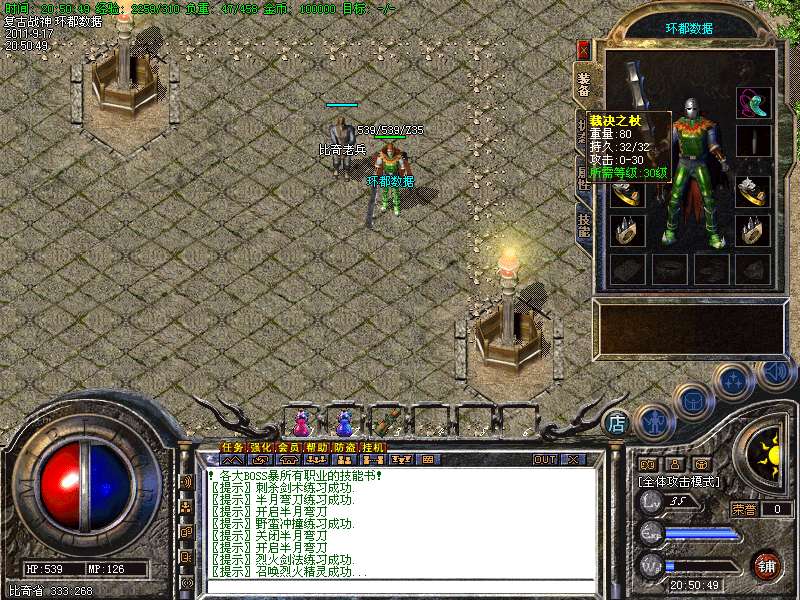 特色技能:狮子吼.灭天火,无极真气,开天斩、火龙气焰、等高级技能玛雅地图BOOS均有爆出