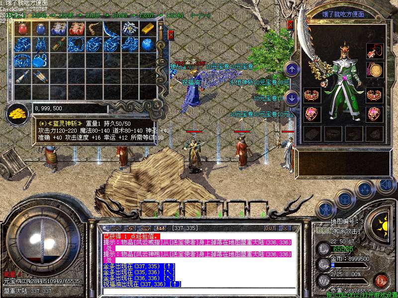 逍遥系列:会员地图每2小时会刷2个携带绿色套的人型怪物,运气好灭世装备就到手(在土成NPC可以合成)。 [暴率好爆]