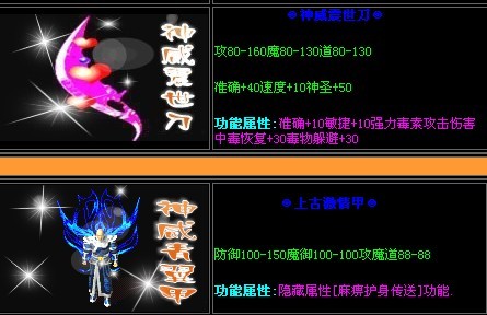 血煞系列:血煞系列做为本服终级装备,只在血煞使者GM 身上爆出 !不卖,不卖不合,只有通过打怪, 武器可以升级20点!成功几率很高!