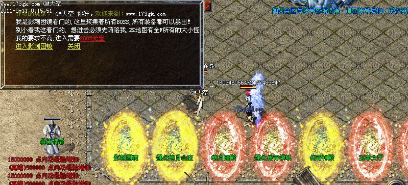 元宝比例:短信1比200万。点卡1比400万。网银1比450万。冲值元宝请到网站冲值!
