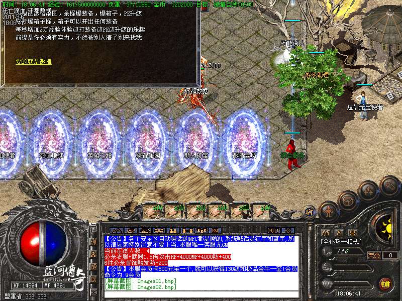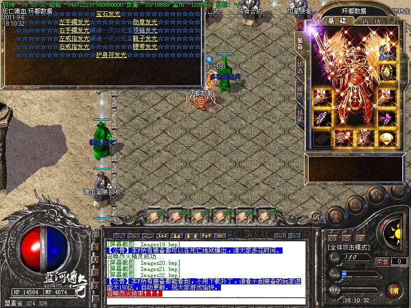 必杀套:6件死亡滴血首饰触发 防 + 200 必杀衣服+武器 1.5 倍攻击 HP+4000 MP+4000 防+400
