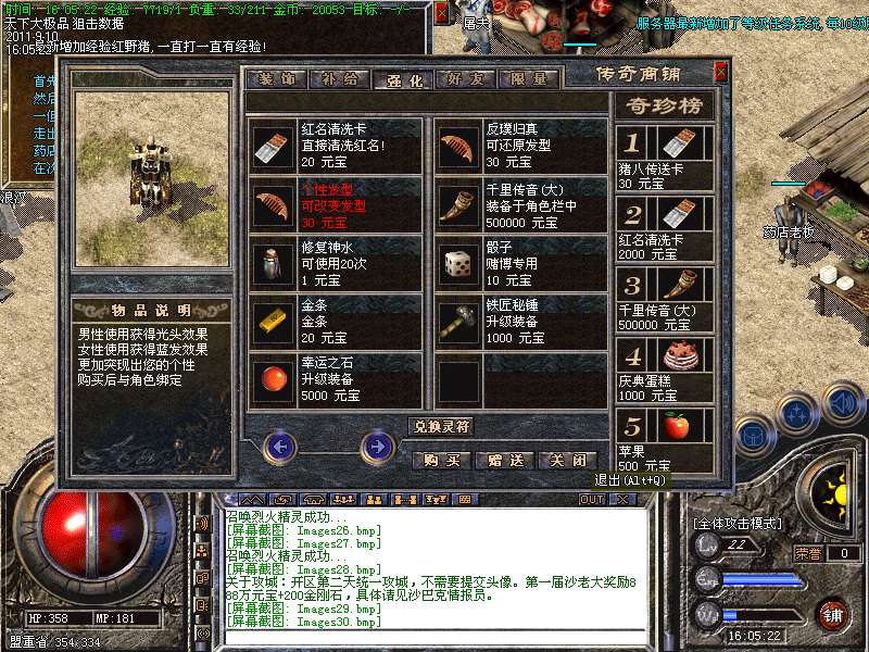 [介绍]服务器最新增加了等级任务系统,每10级服务器会自动送出任务传送卷,进入指定地图.90级任务赠送[屠龙(卓越),嗜魂(卓越),霸者(卓越)],100级任务赠送[传奇之刃]