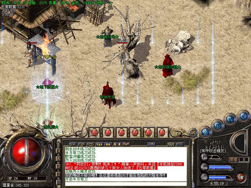 ★★游戏指南:初级新手先到矿区挖矿获得金币且可以很快升到45级,后进入尸王殿获得初级技能.然后进入新手天堂___魔龙血域.这儿的战将类怪物可以轻松获得雷霆和强化雷霆类装备.遇上魔龙教主还有机会获得战神.开天★★