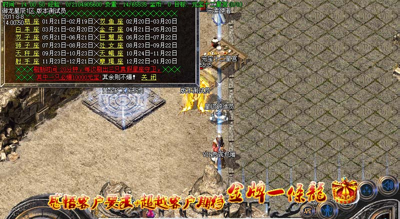 ①.【黄金矿工】:每天12.30-20.30之间每2小时开启一次,元宝经验装备,大放送