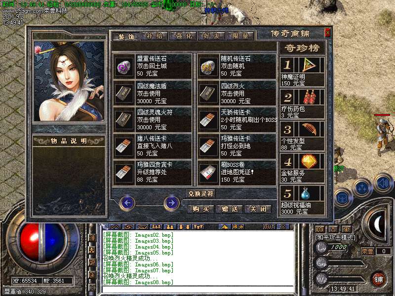 新手玩家请到祖玛打取祖玛装备换取元宝 新增终极之里和魔神绝地和神泣废嘘里面怪爆终极装备。