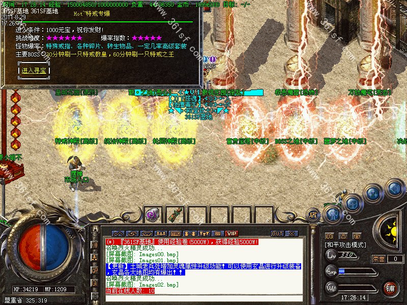 【更新】新增地图【万劫魔宅】打晶石的好地方,所有装备都暴!【极恶魔窖】打元宝的好地方! 【皇城花园】【帝国广场】装备暴率超高!