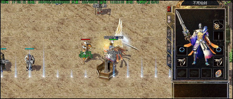 【仙剑温情提示】:新增天神套装,附带麻痹复活传送吸血功能,声望传送在扶桑爆,暴率高,天神套在诅咒分解NPC可以合成高级装备。