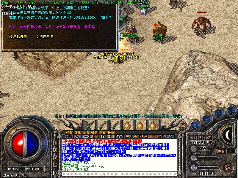 完美网络2011巨献—1.85邪灵龙帝皓月元素轻变版,版本采用传奇版本中HERO游戏引擎,打破传统死板玩法,升级快,爆率高,全新游戏模式独特的游戏方式,独创不可多得的特色游戏功能,增强了版本的可玩性,调整了怪物爆率,加强了物品极品爆率,让玩家无论是在打怪练级,PK寻宝都能得到一个全新的体验,加入了装备元素、三大技能系统等,让玩家乐此不彼,极品的爆率更是让你目不暇接,并且加入全新的游戏功能,让玩家乐不思蜀,是您长期开区的不二选择。联系QQ:31303995