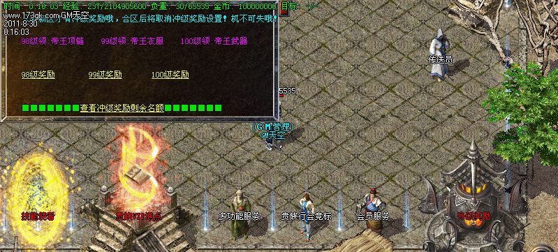 ◇冲级奖励:95 ——100级均有各种宝物的奖励.