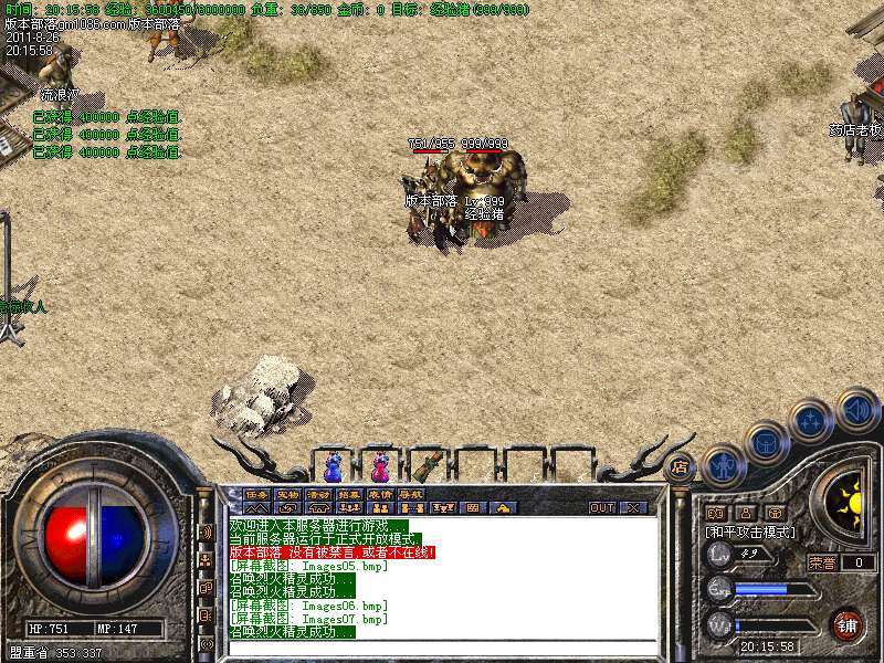 【游戏特色】一切元宝说话,所以疯狂的开小号去打装备回收元宝吧。大号只需挂机泡点升级!
