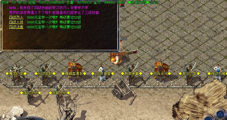★ 玩家可先前往新人练级地,1分钟可升级到35级。玩家升级到35级系统将送您祖玛套装一套,道士47级可招老虎.56级召双虎