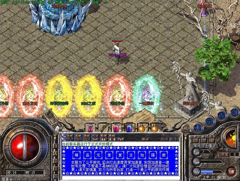 【版本特色】本游戏由风云网络独家奉献。2011最新精品元素小极品!所有装备均有几率爆出极品!最多可以增加5点属性!