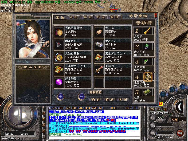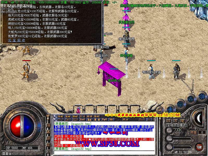 【装备回收】玩家打出来的各种低级装备都可回收.可以在土兑换NPC那里换取经验和元宝.
