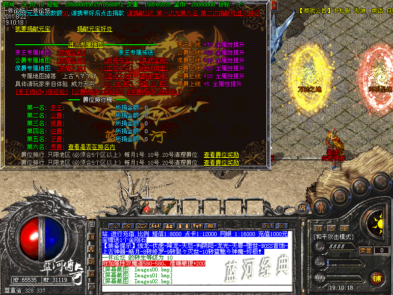 【赚取元宝】:新手地图.VIP贵族专属地图:免费进入比较适合新人打装备回收元宝的六道轮回通关地图!