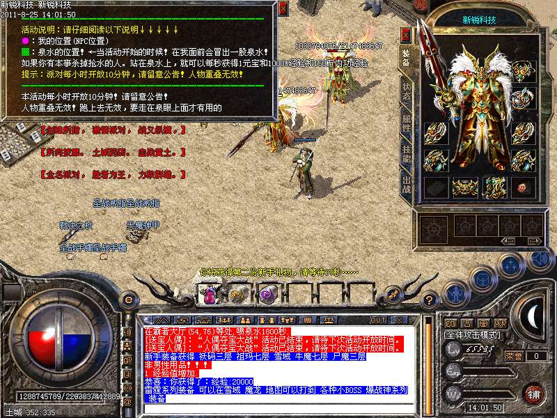 新手玩家上线比奇新手村,做完新手任务可以获得上千万经验!
