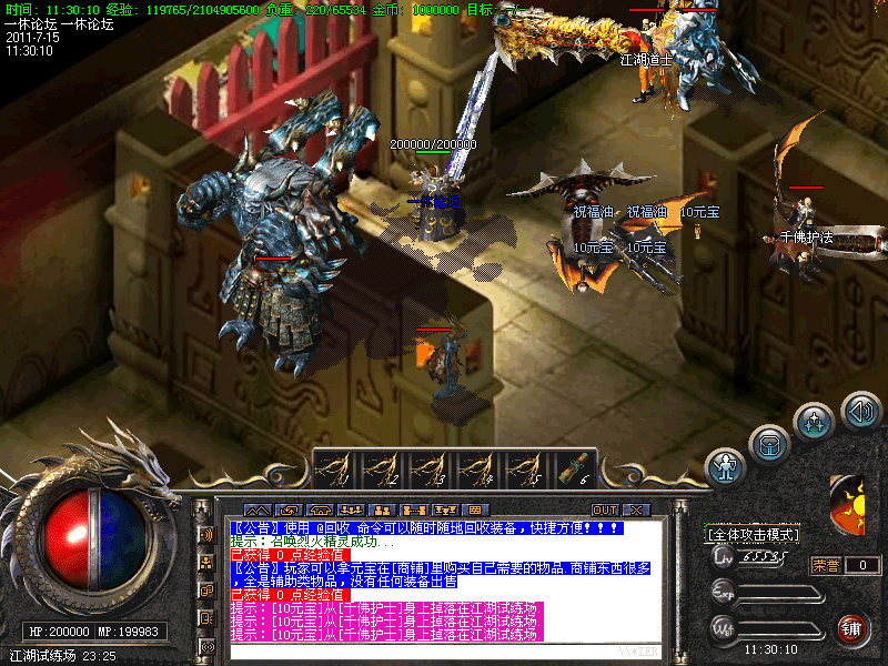 ★新区开放第三天攻城,新区奖励60W元宝.老区奖励30万元宝.攻城后自己到总管处领取元宝。