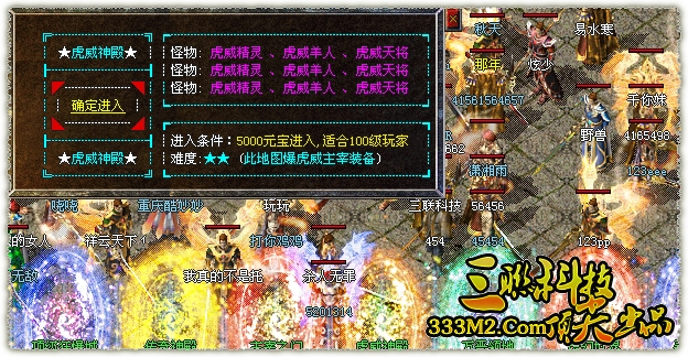 地图介绍:杀手天堂→进入此地图每秒增加一千万经验杀一人奖励2000元宝被杀扣取2000元宝