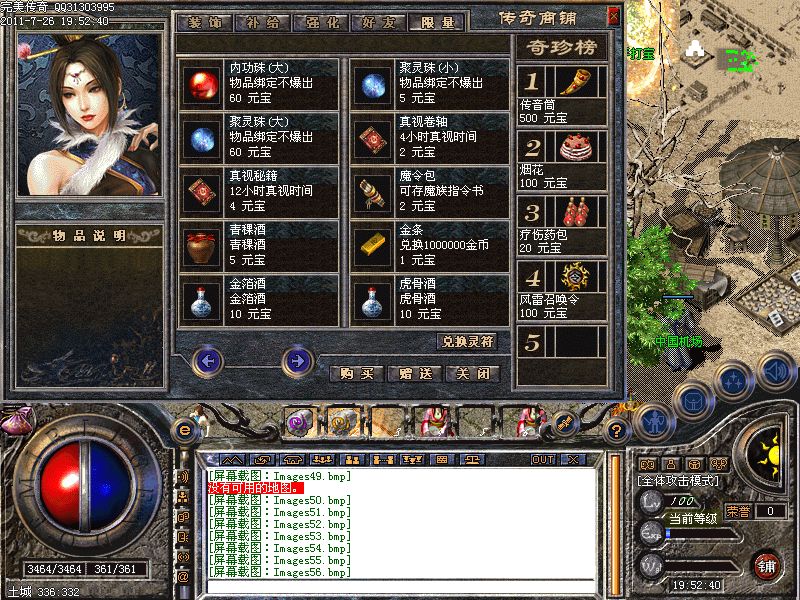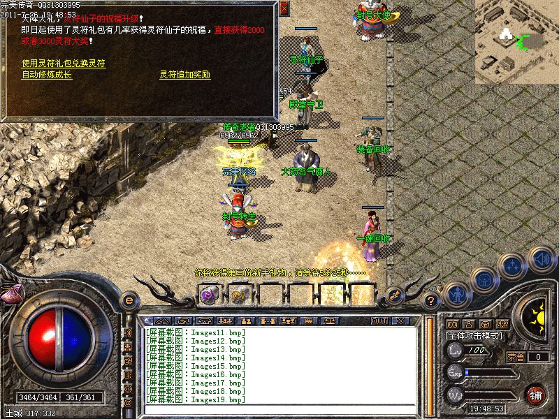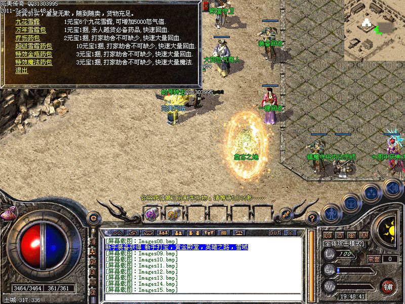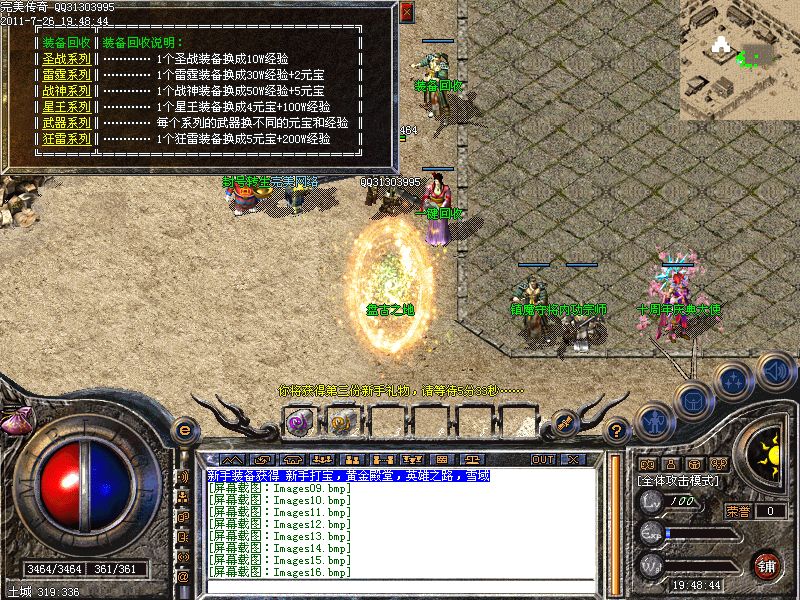 5.更新盛大最新摆摊系统(在游戏中聊天窗口界面上方有个摆摊按纽,可以摆摊出售装备换取金币和元宝)
