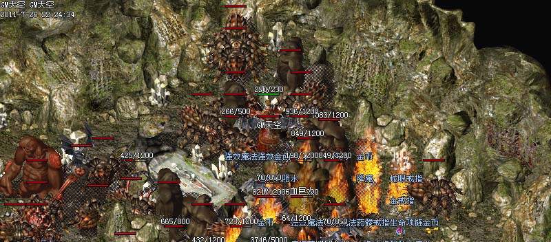 骨魔洞:刷新怪物:黄泉教主会爆装备:龙牙、怒斩、逍遥扇祝福油主要BOSS:黄泉教主3小时刷新一次