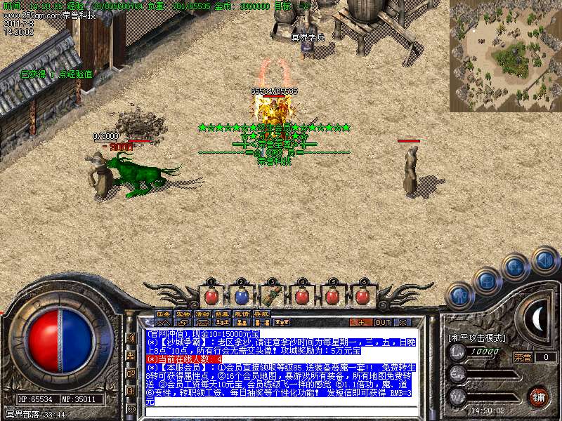 10.月光系列:七大城,会员地图每1小时会刷2个携带天地套的人型怪物,运气好了 什么都可以打的到