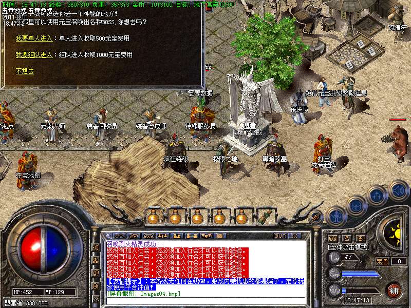 高级地图:黑暗古幕、龙帝迷阵、月神禁宫,打高级装备赚取元宝的地图,土下方 NPC进。