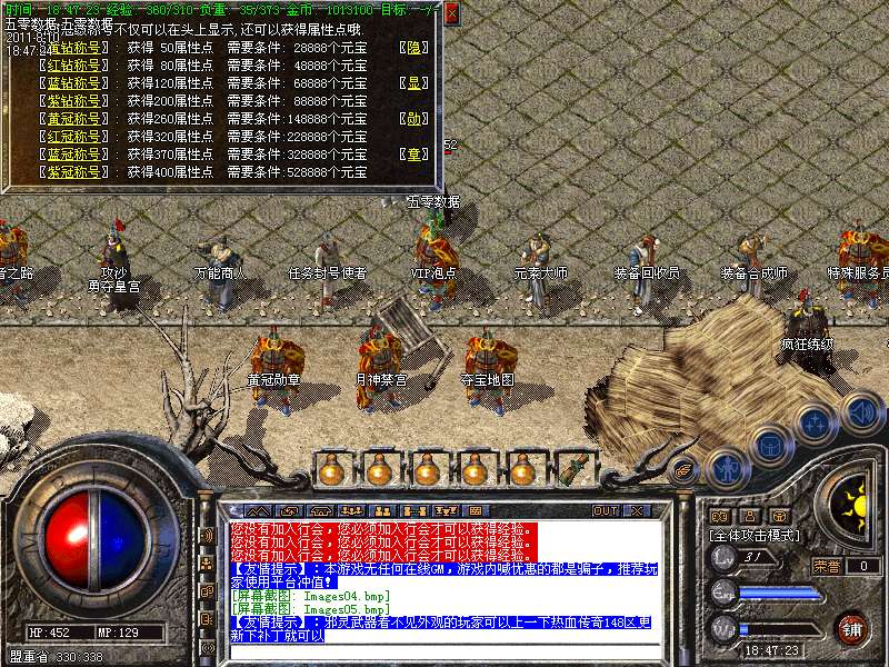 初级地图:魔龙地图、邪恶深渊、封印监狱,打初级装备和赚取元宝的地图,传送员处进。