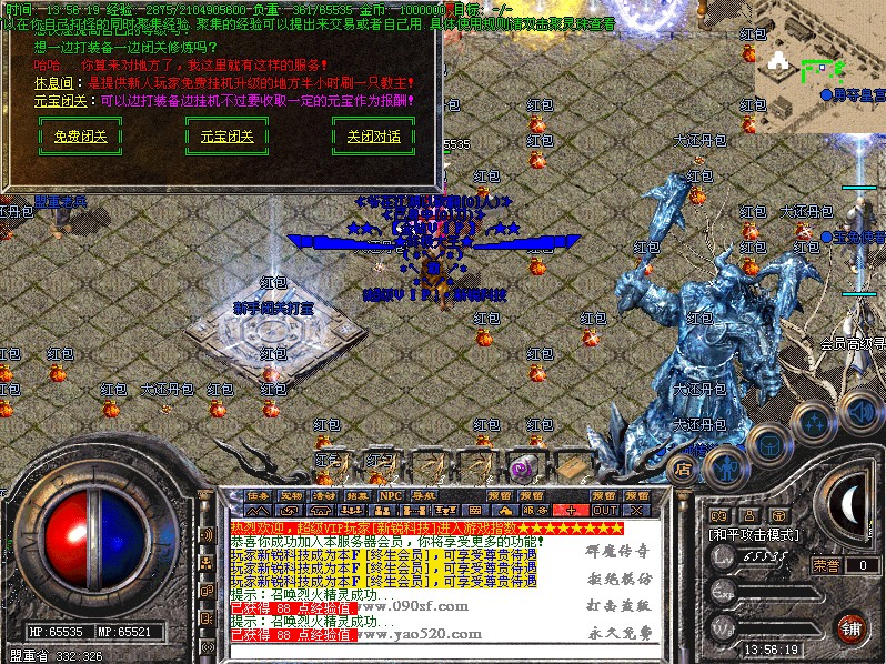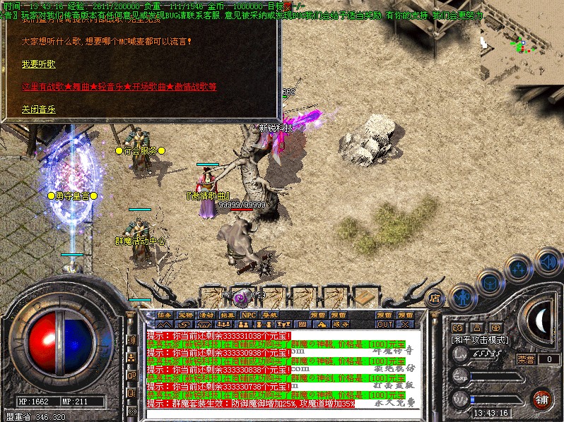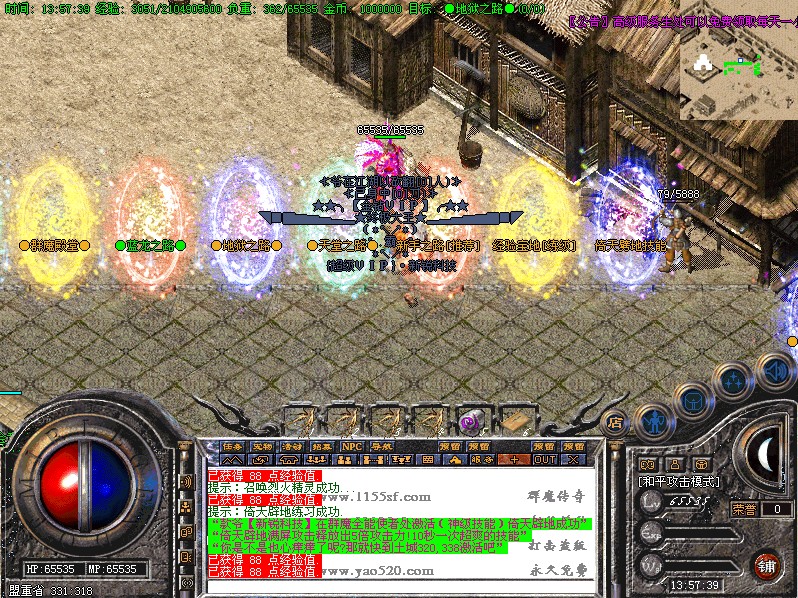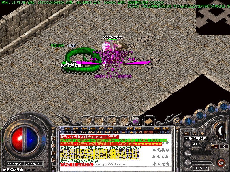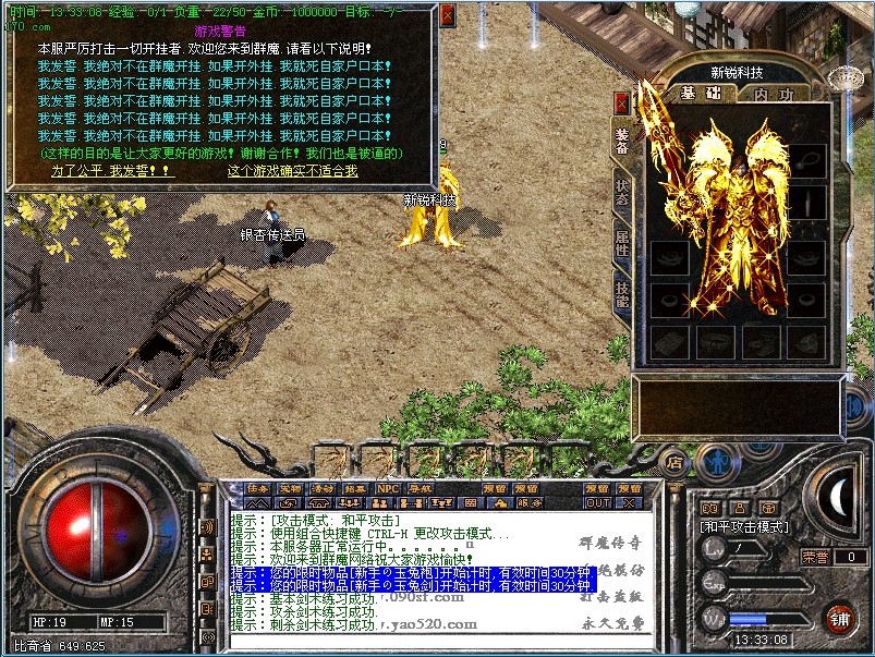 6.人物上线就送聚灵珠,可以在你自己打怪的同时聚集经验.聚集的经验可以提出来交易或者自己用.具体使用规则请双击聚灵珠查看