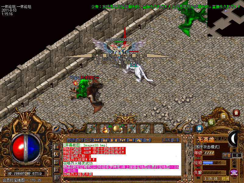 公告:看不到装备的请到网站下最新补丁,游戏中一切装备靠自己打,普通玩家买个5块钱的会员就有打不完的终级怪