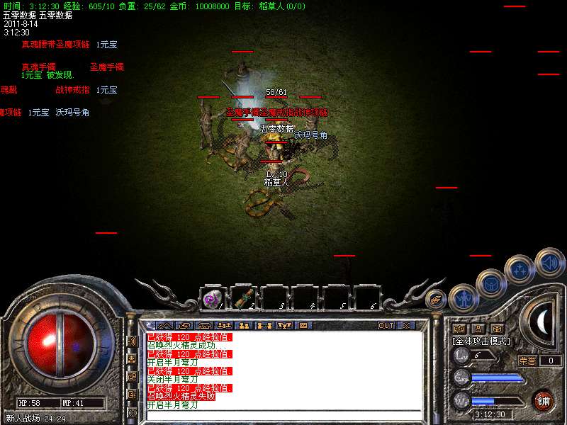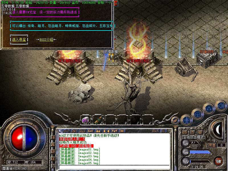 【技能】【决战尸王殿】每20分钟刷新一次,可以爆出四级烈火,灵魂,四级盾,飓风,流星火雨..等等技能书!!