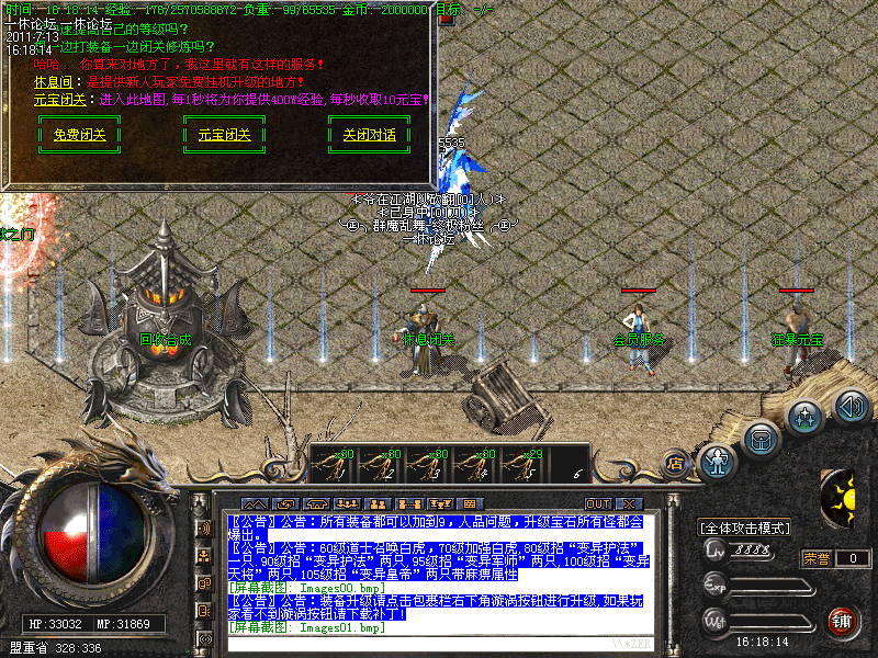 装备升级请点击包裹栏右下角漩涡按钮进行升级,如果玩家看不到漩涡按钮请下载补丁!