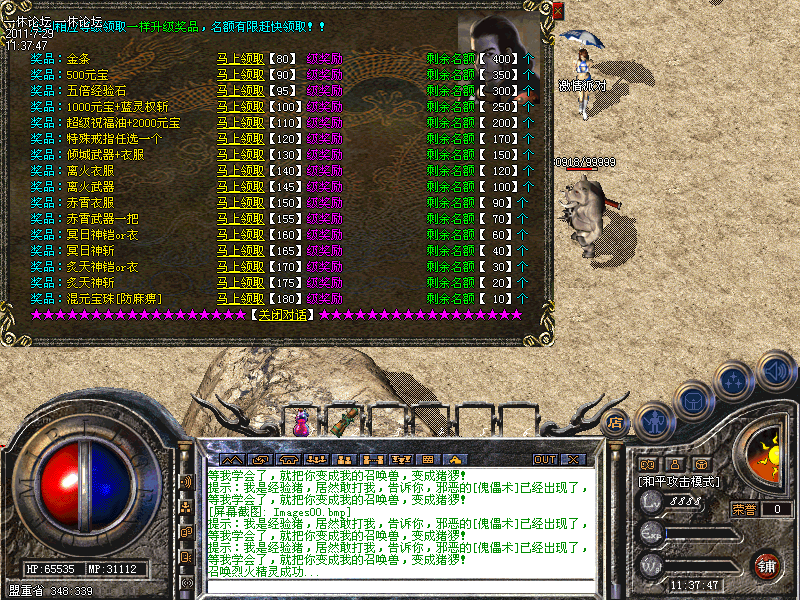 最新特色:行会掌门可使用命令:@行会令 召集本行会所有成员到自己身边一起战斗,召唤一次需要500元宝。