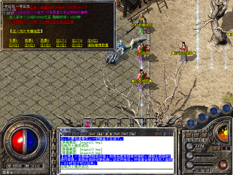 轩辕令牌地图是本服爆率比较高的地方,可爆出倾城,离火,赤霄套装,强烈推荐。