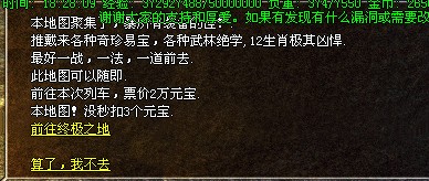 [250]特色一:快速的升级模式,免费泡点,每秒100W经验。[激情殿堂]只有一人在地图内的时候每秒获得经验500W.从传送员进入[贵族泡点]每秒享受1亿经验