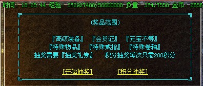 [250]特色五:本服的抽奖系统可抽出本服所有物品...其中包括装备.历练石.会员证.特殊戒指.元宝等!