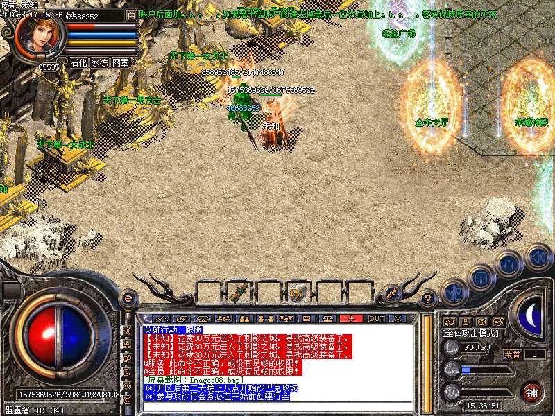 (*)每晚攻沙后,22:30--23:30,在[土武器店门口]附近每隔5分钟发放10000元宝、一千万经验卷