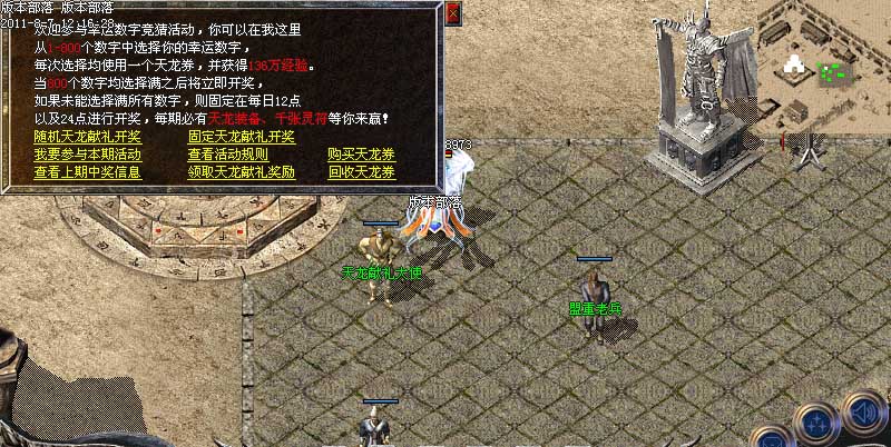 欢迎来到版本部落,本服为最新100%仿盛大玛法通鉴版本(挖宝、鉴宝),增加盛大所有最新技能,最新传奇套装,如果在游戏中有任何疑问,请点击盟重玛法小秘查询游戏攻略!玩家特别注意,请勿在游戏中使用任何加速吃血变态外挂,管理会不定期检查后台,发现使用恶意外挂者一律删号处理!谢谢所有玩家配合!