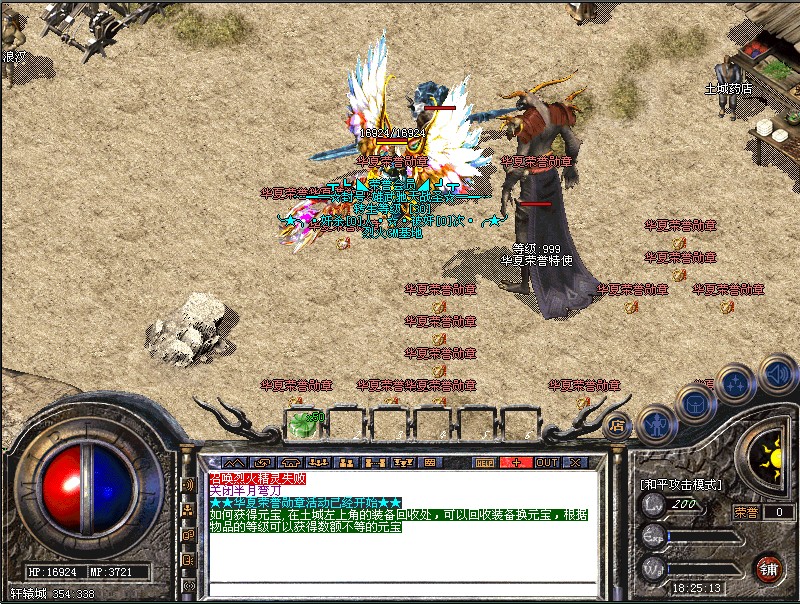 每隔1小时,土城药店附近就会有荣誉勋章活动,这些勋章在宝藏使者处可以换取元宝盒,也可以兑换元宝