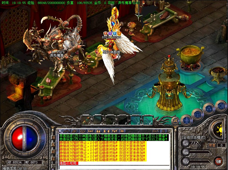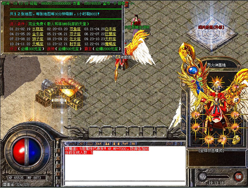 ⑦.【魔族统领】:每隔3小时自动开启一次,激情殿堂刷1只魔族统领,杀死后爆<终极装备>