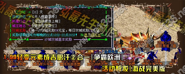 【攻城奖励:】新区开放2日后攻城.领取新区奖励5W颗元宝.老区奖励2W颗元宝...