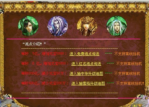 元宝比例1:1亿,元宝只能点上仙到50重,剩余重数必须打卷,各大BOSS都有爆!