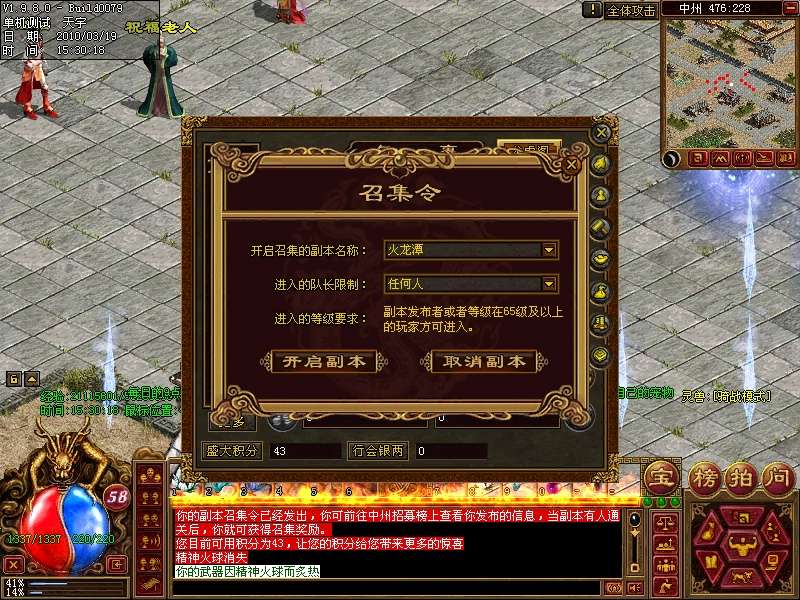 1.更新火龙潭、冰封迷阵副本,需要在商城购买召集令进入
