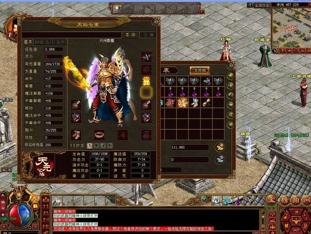 7:支持官方的外现和内敛元神随时切换(需激活心命点)切换时间是60秒冷却时间,元神装备系统自动切换,更加人性化!