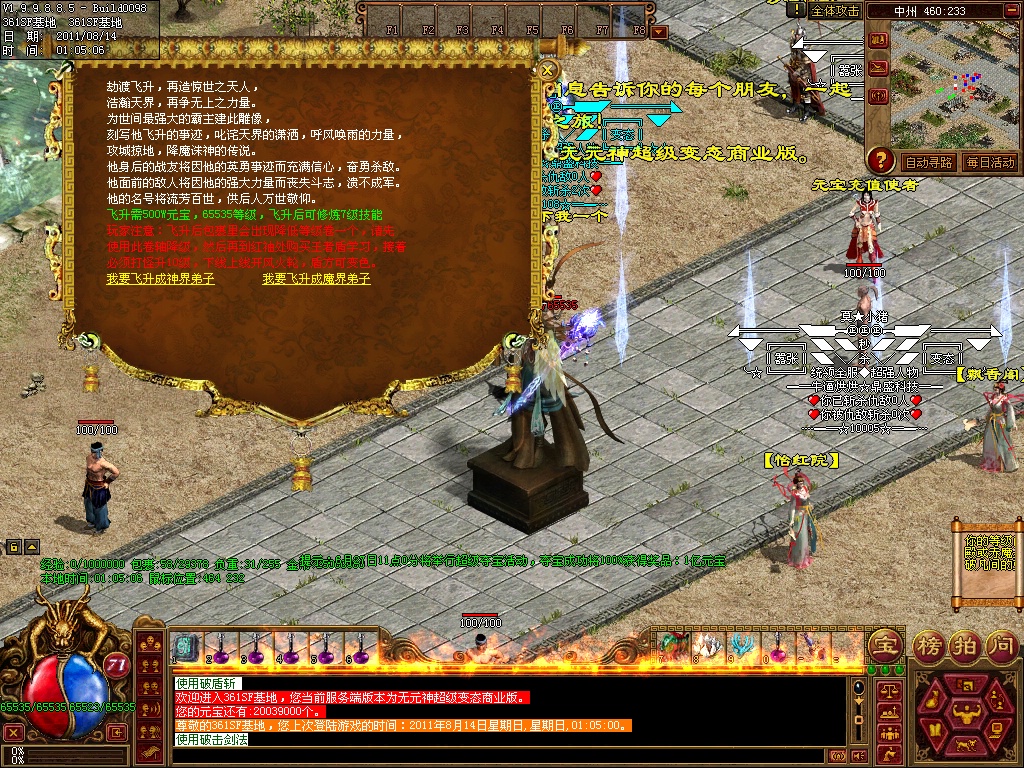 版本名称:361sf基地-2.0传世主宰秒升65535绝对牛逼超变版