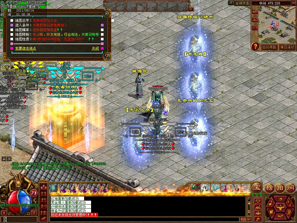 游戏活动是非常之丰富,已实现:多种夺宝方式-狂暴活动-血海深仇-激情挖矿-真假虎王-争分夺秒-神兵争霸-娱乐抽奖-斩杀成吉思汗-万众风采-全民PK等多种活动!