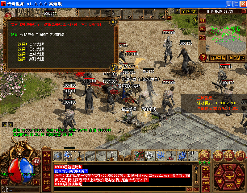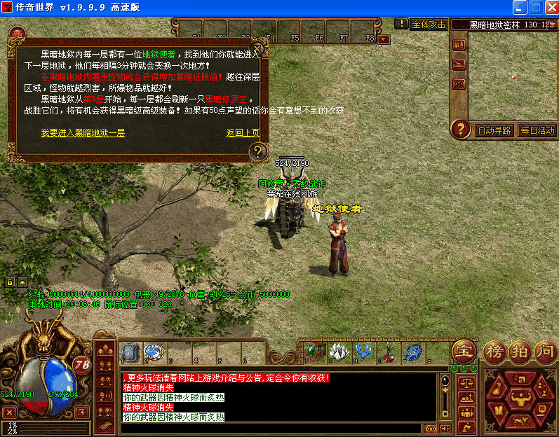 本服版本为1.9996黑暗地狱综合版,支持骑战、元婴、神威狱、天魔宝藏、强化技能、黑暗地狱,海底世界等功能!