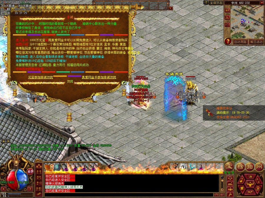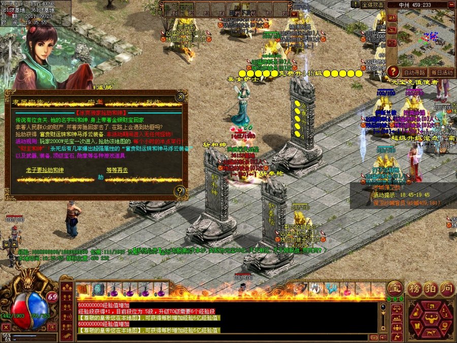 【系统公告】:最新的抢劫和绅和斩杀秦桧活动.每小时举行.杀死暴稀有物品.超级血石和魔石加15000血}