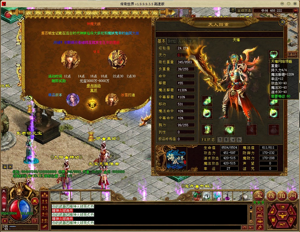 - 天宇网络传世1.975天绝魔域版服务端 5959